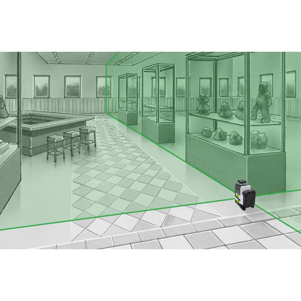 Dieser dreidimensionale Laser projiziert einen horizontalen und zwei vertikale Laserkreise, optimal zum genauen Ausrichten von Gegenständen im gesamten Raum.