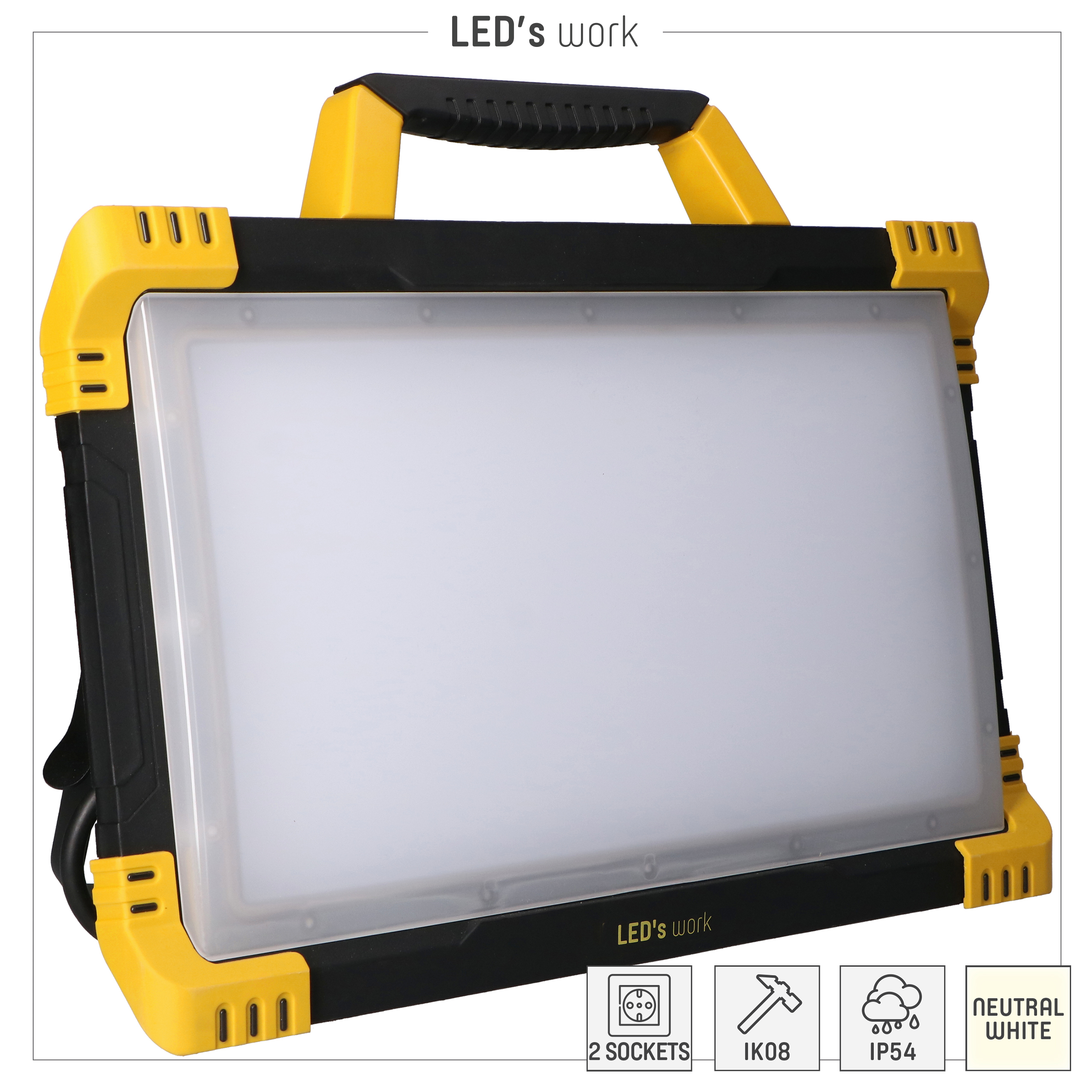 SHADA LEDs work Arbeitsleuchte 80W 4000K IP54 9200 Lumen mit 2 Steckdosen